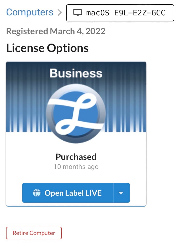 Login to Label LIVE on your new computer to retire your old computer and reuse your existing license.