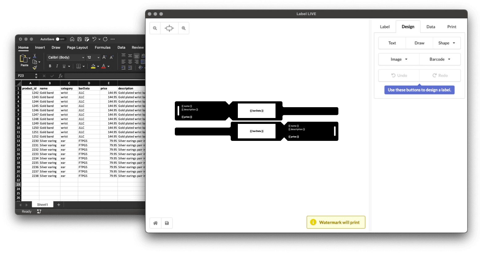 Easily create thousands of label variations based on data in an excel spreadsheet - from different part labels to modifying ingredients in your product line.