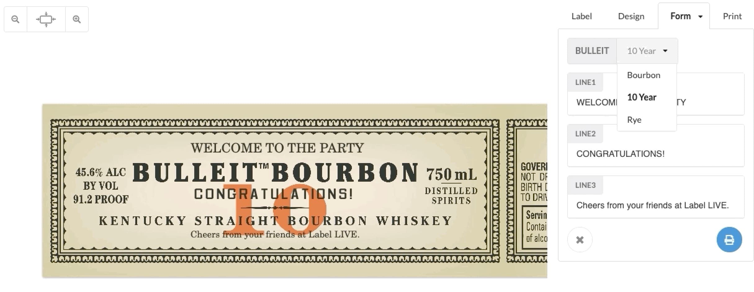 Label LIVE support worked with Bulleit's brand team to make sure everything in the classic label design translated to this new solution. The fonts and colors needed to be just right. Bulleit also needed to make this available for each variety of whiskey it sells, from its bourbon to its American Single Malt.